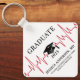 This black and white heartbeat-themed graduation keychain features a bold red EKG line running across the design, with a graduation cap icon at the center instead of a heart. Designed to be gender-neutral, this keychain is perfect for celebrating any graduate, whether from medical school, nursing school, or any other program.