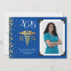 Celebrate the new graduate from nursing school with this gold and blue RN caduceus graduation announcement! Elegant with a vintage photo border and gold confetti accents! Perfect for anyone graduating as a nurse with their bachelor of science in nursing!