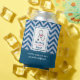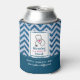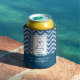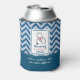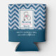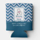 A can cooler with a blue chevron faux glitter pattern. Not actual glitter, just an image. Layered over top is a rectangle shaped frame and inside is the saying: Nursing is a work of heart, with a little red heart and a gray stethoscope. text along the bottom border also says Happy Nurses Day, you make a difference.