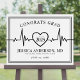 This heartbeat-themed graduation party sign features a bold black and white design, with a striking black double-line frame and a white background, adding a modern yet timeless touch. The classic serif fonts and clean, modern typography perfectly complement the EKG heart line, making it an ideal way to celebrate a medical or nursing school graduate. While the current design is in black and white, all colors—including the heartbeat line and background—can be customized to match school colors or the graduate’s favorite shades.