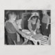 Old 1940s photo of WW2 war workers' nursery. Cute little girl plays Red Cross nurse with a doll at the Bella Vista Nursery School in Oakland, California.