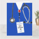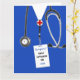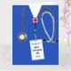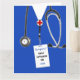Creative nursing school graduation card template featuring blue hospital scrubs. To personalize, edit text to add name of your favorite nurse.