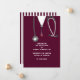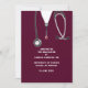 Creative nursing school graduation announcement for nurse grad featuring maroon hospital scrubs and stethoscope art.