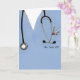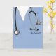 Creative nurse graduation card featuring hospital scrubs, name tag and funny Swiss Army knife. To personalize edit text to add name of nursing school grad.