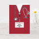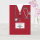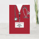 Creative nurse graduation card featuring unique red hospital scrubs. To personalize edit text to add name and otherwise customize.