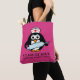 Nursing school graduation class custom Tote Bag. Funny penguin nurse cartoon holding a big syringe needle. Bulk gifts for graduate students, RN nurse, caregivers and others. Pink or custom color. Double sided print.