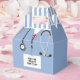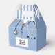 Creative nurse graduation party favors featuring blue hospital scrubs. Edit text to personalize for nursing school grad.