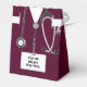 Nurse graduation party favors featuring maroon hospital scrubs. Edit text to personalize for your favorite nurse, registered nurse, nurse practitioner or other healthcare professional.