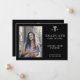 Modern elegant black and white nursing school graduation announcement card template with your custom photo and text.