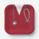 Unique medical-themed party plates featuring red nursing scrubs and stethoscope illustration. Add your text to customize.
