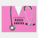 Creative nursing school graduation congratulations sign for nurse grad featuring pink scrubs and stethoscope. Edit text to add name.