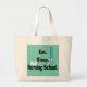 Funny Nursing Student Tote Bag with nurse cap and syringe design. "Eat. Sleep. Nursing School".