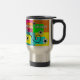 Nursing Student Retro Flowers Travel Mug, background in multiple bright colors with black and white retro flowers and stethoscope design.