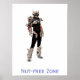 Futuristic security guard standing tall with slogan "Nut free zone"