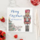 These colorful, elegant, and festive custom Christmas or holiday party napkins feature a Nutcracker fairy tale theme. A large image of a nutcracker dressed in red and gold in placed on the right. A cute little mouse king and mouse ballerina are pictured at the bottom decorating a Christmas tree. Faux gold glitter accents the illustrated images.