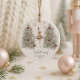 Celebrate your little one’s milestone with this charming Nutcracker Ballerina First Christmas ornament. Featuring a graceful watercolor ballerina inspired by the classic Nutcracker ballet, flanked by two beautifully decorated Christmas trees adorned with candy canes and ornaments, this ornament brings timeless holiday magic to your tree.