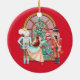 A lovely addition to your holiday tree decorating, our gorgeous watercolor style nutcracker design double sided ceramic ornament, featuring a dancing ballerina with the Nutcracker and Mouse King standing in front of a beautiful Christmas tree on a red ornament! Beatiful addition to your ornament collection, or a lovely gift idea for someone who loves the nutcracker, ballet or mouse king.