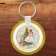 This double-sided, round keychain features a beautiful watercolor-style illustration of a ballerina, like the Sugar Plum Fairy, dancing gracefully by a Christmas tree laden with gifts. The vibrant design is encircled by a stylish gold foil effect border.