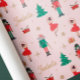This nutcracker Christmas wrapping paper features a cute, whimsical pattern of nutcrackers and dancing ballerinas over a pink background. Personalize it by adding your child's name in a stylish script font. The perfect personalized giftwrap for the holidays!