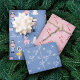 This Nutcracker Christmas wrapping paper features 3 separate, whimsical patterns in a pink, yellow and blue color theme. Sheet 1: a nutcracker and dancing ballerina pattern; Sheet 2: candy-canes and snowflakes; Sheet 3: Fa la la pattern in blue and white. A unique and adorable giftwrap for the holidays!