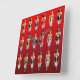 These funny nutcracker toy soldiers in hussar uniforms, with funny hats, spiky white beards and long black mustaches over a hot red background will bring a smile on anyone's face!