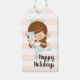 Cute and magical Nutcracker ballet themed Christmas party gift tags with a brown haired Clara and her beloved nutcracker as she leaps en pointe in her blue and white tutu and ballet slippers. You can change the wording from Happy Holidays to Merry Christmas. Contact me to change the hair and skin tone of this lovely ballerina. To and from on the back. Perfect for a children's Christmas party, corporate event, or a child's Nutcracker themed birthday party. Artwork © Chrissy H. Studios, LLC. All rights reserved.