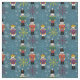 Use this nutcracker fabric for all of your holiday sewing projects. The design features a repeat pattern with nutcrackers and multi-colored snowflakes against a blue background.