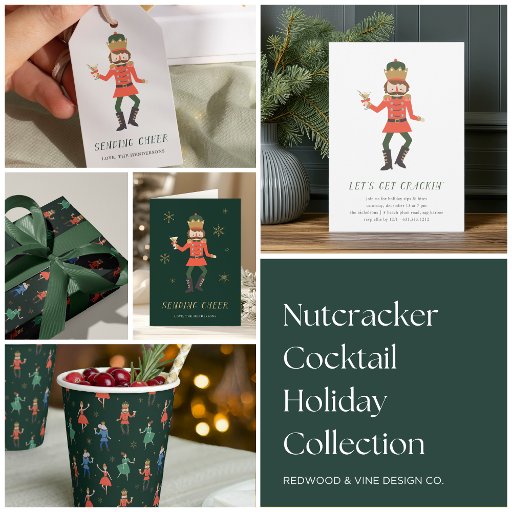 Kick off a festive celebration with this whimsical Nutcracker holiday party invitation by Redwood & Vine Design Co. Featuring a charming illustrated nutcracker holding a seasonal cocktail, this playful design sets the tone for a merry night of mingling, merriment, and holiday cheer. The bold “Let’s Get Crackin'” headline adds a witty twist, making it ideal for office parties, neighborhood gatherings, cookie swaps, or friends-and-family festivities. Personalize all event details with ease to create an invitation that feels cheerful, unique, and delightfully on theme.