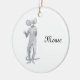 Lightweight, smooth, pure white ornament with nice sheen. Perfect size to be seen from across the room ... and to attract closer inspection! Price was great for ordering enough for the whole family! Clear, bold black design just as requested. Matches the order exactly. Just so nice!