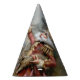 Whether you're planning a birthday or hosting a garden party, these charming paper hats - inspired by antique oil paintings - will add a dash of fun to your event. This design features a vibrant portrayal of the iconic characters from *The Nutcracker* ballet, including the Nutcracker, Clara, and the Mouse King, all captured in dynamic and lively motion. The characters are set against a moody and evocative background that enhances the drama and movement of the scene. The artwork seamlessly combines elements of a vintage esthetic with modern oil painting techniques, creating a rich texture of brushstrokes that adds depth and dimension. This approach evokes a strong sense of nostalgia, reminiscent of cherished childhood memories, while also encapsulating the warmth and wonder of the Christmas season.