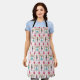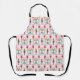 Cute and fun Christmas apron featuring hand drawn illustration of cat, dog, and mouse as nutcracker ballet characters. The background is pink.