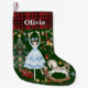Add a touch of elegance and nostalgia to your holiday decor with this Nutcracker Ballet Christmas stocking! Featuring vintage-inspired designs of Clara, Nutcracker solider, a charming rocking horse, a festive Christmas tree, and other holiday elements, all set against a luxurious green background, it’s a stunning addition to your mantle. The red gingham cuff adds a cozy, classic touch and offers a spot for personalization with a name, making it a perfect keepsake for family or loved ones. Fill it with holiday surprises for a truly magical Christmas! Coordinating items available in-store! (c) Somerset Fine Paperie