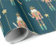 The Nutcracker Christmas wrapping paper features a nutcracker toy pattern with a classic blue background, gold Stars and gold Stripes for a classic elegant look.