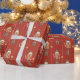 The Nutcracker Christmas wrapping paper features a nutcracker toy pattern with a classic red background, gold Stars and gold Stripes for a classic elegant look.