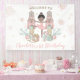 Personalize this sweet pink winter onederland first birthday party welcome sign backdrop banner easily and quickly, simply press the customize it button to further re-arrange and format the style and placement of the text. Featuring whimsical characters from the Nutcracker in sweet pastel colors. Perfect for your little snowflake's first birthday! Also fantastic for other ages and occasions such as baby shower, baptism, christening, new baby and more. Matching items available in store! (c) The Happy Cat Studio.