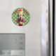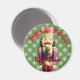 A realistic image of a traditional Nutcracker is printed on a green background with a festive snowflake pattern on a cute Christmas magnet. There is a template for your custom name in red letters and you can personalize the greeting. An excellent gift for any ballet lover or dancer.