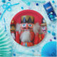 Three colorful nutcrackers on a red background, matching coaster and paper napkin also available