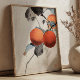 This vintage Japanese art poster features a delicate nuthatcher perched atop ripe persimmons, illustrated in Ohara Koson’s refined ukiyo-e style. Soft natural tones, graceful composition, and subtle detailing highlight the harmony between bird and fruit, creating a serene scene inspired by traditional Japanese nature art.