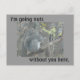 Squirrel mournfully eats a nut among grey trees with "I'm going nuts without you here."