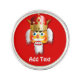 Show off your Christmas spirit with this custom lapel pin! It features a nutty nutcracker king cartoon with long white beard and a large gold crown on his head over a red background. Personalize it and bring some joy to a loved one with a cheerful Xmas present!
