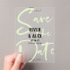 Acrylic typography save the date card with a modern script in nyanza green printed across the whole card and your names in bold black letters centered on the modern acrylic save the date card without a photo.
