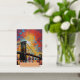 This colorful mini art print features an abstract image of a sunset over New York City with the bridge and water in the foreground. This modern art print features shades of yellow, orange, and red, along with some blue and purple tones. Brighten up any room in your home with this cute tabletop print, no frame needed!
