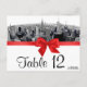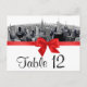 NYC Etched Fisheye Skyline BW Red Table Number