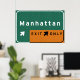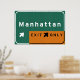 NYC New York City Manhattan Exit Only Interstate Highway Freeway Road Sign Design -Automotive Car Travel Souvenir Gifts -Authentic & Accurate FHA/MUTCD Typography. -Authentic FHA/MUTCD Pantone Color Specifications.