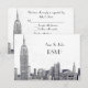 Elegant, stylish, chic customizable invitations and accessories with an iconic view of the New York City skyline, featuring an etched look photo of the ESB and Chrysler Building and rear view of the Flatiron Building on a white background.