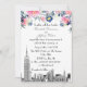 NYC Skyline ESB Etch Pink Blue Floral Wedding Invitation