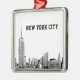 Customizable invitations and accessories with an iconic view of the New York City skyline, featuring an etched look photo of the ESB and Chrysler Building and rear view of the Flatiron Building.