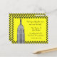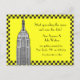 Customizable invitations and accessories with an iconic view of the New York City skyline, featuring a black & white etched look photo of the ESB against a black and yellow checkerboard background design inspired by city cabs .