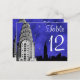Customizable Invitations and accessories with a silhouette of the New York City skyline featuring the ESB and an etched Chrysler Building in the foreground. They also feature a blue starry night background with white stars.