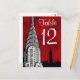 NYC Skyline Silhouette With Chrysler Building, Red Starry Background Collection - Table Number Card Postcard =========